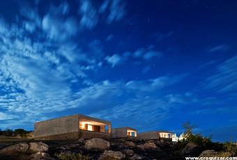 “Estudiando el programa que se nos pidió, llegamos a la conclusión de que la mejor opción, era la dispersión de las unidades que componen el complejo; estas se distribuyen en forma de módulos aislados que parecen haber “aterrizado naturalmente” en el terreno, como las propias rocas del terreno. Esta solución esta destinada a mantener el ambiente agreste y preservar el paisaje sin interferir demasiado (como si lo haríamos si utilizáramos volumetrías grandes)”
