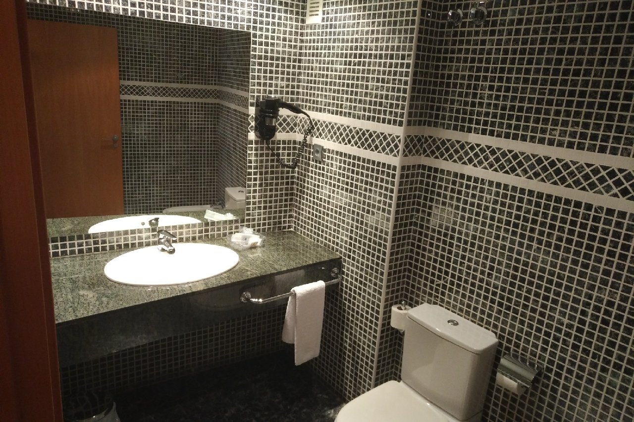 Habitación: 413 Fecha de entrada: 17/05/2018 Tarifa: En una de las avenidas principales de la ciudad. Justo delante del río y a la espalda del casco histórico y de la zona comercial; encastrado entre varios edificios, alguno incluso de interesante factura, encontramos un edificio de cinco plantas rematado con un gran cartel en blanco y negro que pone "Hotel Real". Sobre él, varias placas solares.