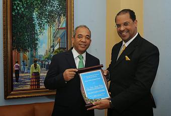 El Vicepresidente Ejecutivo de la Corporación Dominicana de Empresas Eléctricas Estatales(CDEEE), Rubén Jiménez Bichara, recibió una placa de reconocimiento de la Asociación de Hoteles de Playa Dorada en Puerto Plata.La misma se le entregó por su contribución con el relanzamiento turístico de ese importante complejo, pionero en el desarrollo del turismo en República Dominicana. La placa fue entregada a Jiménez Bichara por Julio Almonte, directivo de los hoteleros de Playa Dorada.