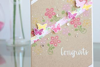 ¡Hola! Siempre me ha enamorado este set de sellos de Wplus9 que se llama "Embroidered Bouquet". Esas florecillas son preciosas ¿no creéis? Aún así, considero que estampar imágenes en cartulina color craft siempre me deja un poco decepcionada porque los colores no quedan tan vivos como cuando estampas sobre blanco. Por eso hoy os traigo un truquillo para darle más luz a esas imágenes :).