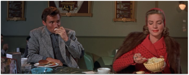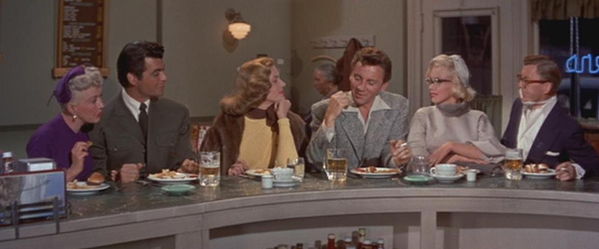 Por otro lado, Pola Debevoise interpretado por Marilyn Monroe es la más joven y sexy y sus conjuntos son muy atractivos. Una de las cosas más graciosas del personaje de Marilyn es que necesita gafas pero para estar más guapa se las quita constantemente por lo que hay escenas muy divertidas que tienen que ver con su ceguera. ¡Los hombres no son atentos con las mujeres que llevan gafas! Men aren’t attentive to girls who wear glasses!”