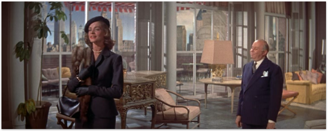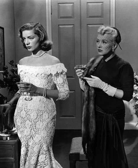 Como buen diseñador de vestuario, Willian Travilla supo adaptar el vestuario a las personalidades de los personajes, por tanto, para Mrs Page, interpretado por Lauren Bacall, una mujer seria y la ideadora del plan para casarse con un millonario, que la hace vestir con muchos trajes y usa colores neutros y apagados, sus vestidos son conservadores y recatados. Aquí os enseño el estilo de Lauren Bacall. Para empezar el vestido de boda de Lauren Bacall, lo encuentro precioso y atemporal.