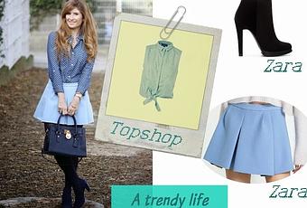 La tercera sugerencia nos la enseñó hace poquitos días Lara, otro encanto de blogger. Autora del blog Be Sugar and Spice sus looks siempre son impecables. La faldita gris que os propongo la tenéis de rebajas, así que ¡aprovechad!