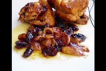 Esta es otra de las recetas que me gustan mucho, es el pollo guisado con pasas, no es el pollo relleno de pasas y piñones, ese lo dejaremos para otra ocasión. Simplemente es un guiso rápido y facilito. Coge un pollo entero, lo limpias o lo compras limpio, eso ya al gusto de cada uno. Yo recomiendo el pollo amarillo, mucho más bueno de sabor aunque sí es cierto que su carne es un pelín más dura que la del pollo blanco. La diferencia de uno al otro se basa en la alimentación. El pollo blanco come solo pienso y el amarillo come maíz, soja y hierba. Ingredientes:Pues yo tengo aquí un pollo amarillo, así que vamos con la receta.1 Pollo enterosal y pimientaPasas de corinto (cantidad al gusto)3/4 dientes de ajo1 cebolla grande1 vasito de vino blanco Cogemos el pollo y lo troceamos en varios trozos, no muy grandes, pero las alitas las dejo enteras. Salpimentamos al gusto mientras en una olla ponemos un chorrito de aceite de oliva. Una vez esté caliente añadimos los trocitos de pollo y los vamos dorando y cociendo a fuego lento. Te recomiendo tapar la olla.Así hasta que veas que ya está casi hecho, pero ojo, que no se queme ni se pase demasiado! Yo te diría unos 15/20 minutos aprox, y ves dándole vuelta, eso sí. Mientras tanto, corta en juliana la cebolla, y cuando ya tengas todo listo y más o menos el pollo hecho le echas por encima los ajos sin pelar y sin cortar, la cebolla cortada , las pasas de corinto y el vino blanco. Deja que se cueza todo junto 15 minutitos más aprox. Controlando que no se queme. Echa también un poquito de sal a la salsa. Dale vuelta de vez en cuando. Listo para comer y chuparse los dedos!Qué te parece? te ha resultado facilita?