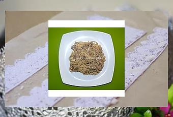 Necesitaremos: 200 gr de espaguetis 200 gr de calamar en dados 3 latas pequeñas de paté Sal Aceite de oliva Cocemos la pasta en una cazuela con agua, sal y un chorrito de aceite de oliva.