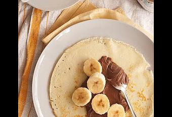 Servimos las crepes con una cucharada de nutella en el centro acompañada con unas lonchas finas de plátano. ¿Delicioso no? Anímate a prepararlas.