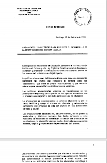 Hoy se quiere compartir con ustedes, en la sección llamada "Reconstruyendo la Historia de la Orientación Educacional y Vocacional de Chile", un documento base, como es la Circular Nº 600 del Ministerio de Educación de Chile. El presente documento que data del 18 de febrero de 1991 y que ha estado vigente hasta la fecha, sin adecuaciones o modificaciones ha servido de directriz tanto para los orientadores como las unidades educativas. Es un documento relevante que permitió dar un encuadre legal y de reconocimiento a la labor y funciones de los orientadores, como a la misma Orientación Chilena.