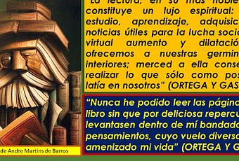 “Un libro sólo es bueno en la medida en que nos trae un diálogo latente, en que sentimos que el autor sabe imaginar concretamente a su lector y éste percibe como si de entre las líneas saliese una mano ectoplásmica que palpa su persona, que quiere acariciarla—o bien, muy cortésmente, darle un puñetazo” (Ortega y Gasset[4]).