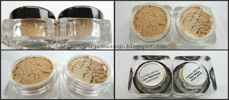 Light Med Beige de acabado sedoso tiene un punto de luminosidad y queda realmente bonito y Fair Beige (demasiado claro para mí) de acabado mate, absorbe los brillos y se adhiere muy bien a la piel. Ambos se adhieren muy bien a la piel. Sombras "Eye Pigment"