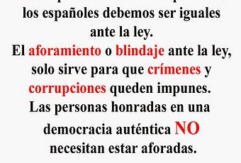 Estoy indignado, aunque mi indignación y asco nada tenga ver con aforamientos o blindajes a pesar de pensar que todos los españoles debemos ser iguales ante la ley. El aforamiento o blindaje ante la ley, solo sirve para que crímenes y corrupciones queden impunes. Las personas honradas en una democracia auténtica no necesitan estar aforadas...