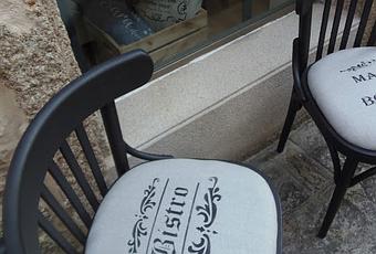 Con una tela de lino.una tablita y un stencil decidí hacer el asiento,pero sudé un montón y no quedaba bien