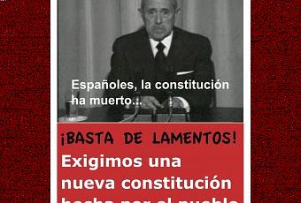 En Barcelona"La constitució ha mort i per això Constituents Barcelona celebra el seu enterrament través d´un acte festiu a peu de carrer amb la companyia de teatre “Indignats”. Perquè neixi una nova constitució que traslladi veritablement la voluntat del poble, en la qual tots els drets s’hi reconeguin