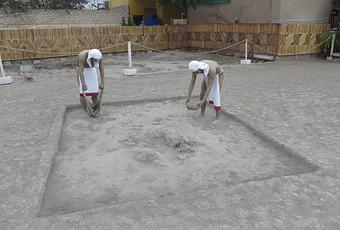 El tour empieza por el lado derecho de la puerta de entrada a la Huaca, donde se puede observar como los antiguos Ychma trabajaban en la preparación del adobito, termino usado para definir a un tipo de adobe pequeño, delgado y alargado. Un detalle curioso en este tipo de construcción es que los adobitos están aglutinados unos al lado del otro en forma inclinada y vertical, en forma de librero, con una separación entre ellos de alrededor de medio centímetro, al medio del muro los adobito están derechos, y de la mitad hasta terminar el muro los adobitos están inclinados en sentido opuesto, osea hacia el centro, al observar esto la primera pregunta que te haces es ¿Por que lo hicieron así? ¿Para que sirve hacerlo de este modo?, la respuesta es simple, son construcciones antisísmicas, ponerlo en forma inclinada y con separación entre ellos sirve para liberar toda la energía y se ponen en consentido de inclinación al centro para evitar el efecto domino, simple y eficiente.