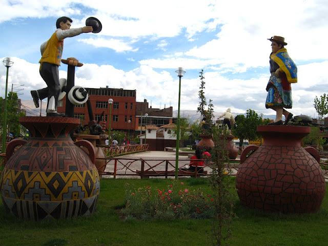 Este “Parque de los sombreros” tiene una gran extensión y está plagado de imágenes que recuerdan las costumbres y la identidad de esta parte del Perú: columnas coronadas por esos anchos sombreros que las mujeres huancaínas usan cuando bailan; estatuas que simbolizan danzas costumbristas; gigantescas representaciones de mates pirograbados; figuras de personajes que forman parte de la identidad huanca; en fin, toda una panoplia de imágenes puestas allí para comunicar cosas de este pueblo.