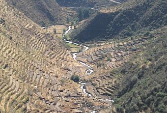Nos habían dicho que a las 07 de la mañana salía una combi desde Laraos, pero no apareció sino hasta las 07 y 30. Hay que tratar de ganar espacio desde temprano porque va repleto y uno se puede quedar sin asiento. También se puede tomar esta combi para bajarse en LLAPAY desde donde se puede encontrar algún bus que, viniendo desde Huancayo u otro pueblo de la reserva, baje a la costa y así dirigirse hacia Lima, pasando por Lunahuaná. La combi dejó Laraos y mientras nos alejábamos veíamos los inmensos andenes del pueblo que tanto nos habían impresionado cuando llegamos. Con algo de nostalgia dejábamos este lugar que sería el último que conoceríamos en la gran RESERVA PAISAJISTICA NOR YAUYOS COCHAS.