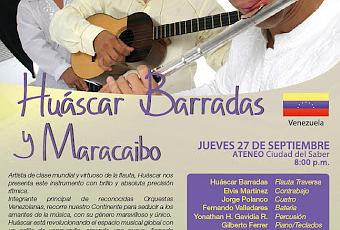 Huáscar Barradas y Maracaibo desempeñan un género maravilloso y único. Es ese el nivel de talento que te hace ser una figura universal. El poder desarrollar un estilo de vanguardia y cosmopolit, llamado Neo-Folklore. El estilo aumenta la destreza y el talento recibido de Dios, y este desempeño magistral enriquece nuestro alcance cultural y amplía nuestro horizonte melódico e intelectual. Es traído por mi apreciado amigo, Don Oscar Oviedo, con la ayuda y el interés por la cultura en Panamá de sus empresarios auspiciadores y patrocinadores, en la ruta de esta temporada del probo y magnífico World Music Panamá 2012 y su justa e idónea labor cultural.