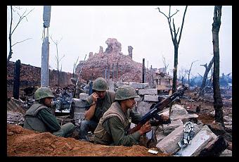"Las crónicas y fotos de Hué, en especial, tuvieron un produndo impacto. Presentaban combates a una escala comparable a la de las guerras mundiales, con una orgullosa ciudad reducida a escombros y ceniza, con las caras sucias de marines heridos y aterrados atrapados en un conflicto despiadado."