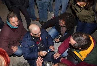 En esta foto de EFE, un miembro de un piquete es atendido por heridas leves tras enfrentarse a agentes de la Policía Nacional en las inmediaciones del mercado mayorista Mercamálaga, durante la jornada de huelga general del 14N.