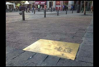 Reanudé mi camino por la animada explanada con la que comparte nombre, la Plaza de la Santa Cruz, y allí, recibiendo infinitos pisotones pero ninguna mirada, una placa dorada insertada entre unos adoquines rojo llamó mi atención. Rápidamente caí en la cuenta de lo que podía ser, de hecho no era ni la primera ni la segunda vez que me topaba con algo parecido durante mis paseos por Madrid. Me agaché con suavidad y pude leer con detenimiento lo que rezaba aquella placa “Planta de la torre (1656 – 1869), Antigua Iglesia de la Santa Cruz”. Mi intuición no me había fallado.