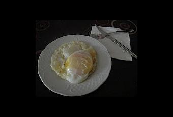 Supongo que en la foto se aprecia el tamaño y el color exacto de este huevo frito, la curiosidad de esta receta no es compartir cómo se prepara un huevo frito (aunque sorprende encontrarse con gente ¡ que todavía no sabe cocinarlo!), sino que la curiosidad de este plato radica en que se trata de un huevo frito de oca.