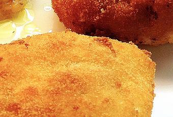 En una sartén calentamos el aceite y pochamos la cebolla. Añadimos las cucharadas de harina removiendo un par de minutos. Apartamos y echamos la mitad de la leche batiendo bien. Volvemos a poner en el fuego y, sin dejar de remover, vamos añadiendo poco a poco el resto de la leche, la pimienta, sal y nuez moscada. Cuando obtengamos una bechamel espesa le agregamos el jamón troceado, las yemas y la dejamos reposar hasta que endurezca. Rellenamos los huevos y los rebozamos por huevo batido y pan rallado. Preparamos una sartén con aceite caliente a temperatura moderada y los freímos hasta que estén dorados. Si te ha gustado esto, Compartelo ! es la mejor compensación que podemos tener !!