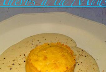 La receta es muy fácil, batimos cinco de los seis huevos con un poco de sal, añadimos el queso rallado, el jamón y unimos todo. Añadimos dos cucharadas de bechamel y dos de nata líquida y el sexto huevo batido. Removemos todo y colocamos en moldes engrasados con mantequilla y pan rallado.Yo llené hasta la mitad el molde, coloqué un trozo de queso en cada molde y añadí otro poco de la mezcla. Me salieron tres moldes.Se hornea al Baño María a 180 grados unos 25 minutos hasta que los mouses estén cuajados. Se acompaña de una bechamel caliente.