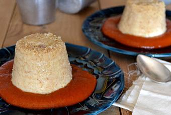 - Se colocan las flaneras en una fuente honda llena de agua y se meten al horno unos 35 min. o hasta que al pinchar con un cuchillito uno de los flanes este salga limpio. Dejamos enfriar un poco, desmoldamos y servimos acompañado de salsa de tomate frito.