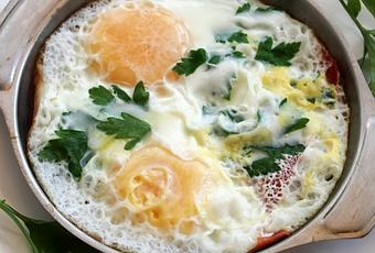 - Nota: mi suegra tiene unos platitos de metal especial para cocer el huevo directo en la flama de la estufa. Se puede utilizar un sartén pequeñito y una tapa. Otra opción es hacerlos al horno en pequeños recipientes de cerámica (ramekín).