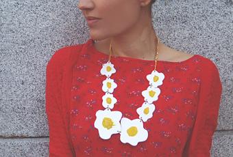 Este es uno de los looks que llevaba hace unas semanas en Madrid y que he titulado “huevos con tomate”. Me puse mi collar divertido de huevos fritos de la nueva coleccion Mediterranean Weekend con zapatos de cordones de American Apparel, un vestido de Des Petits Hauts para Yube, y un bolso de Noelle te Filles. Un loook casual para empezar ( por f’in ) la primavera.