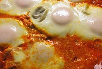 Controlamos que el tomate este terminado de hacer y echamos los huevos por toda la superficie, ponemos un poquititn de sal en cada huevo y tapamos la sartén.