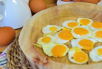 INGREDIENTES:- Huevos.- Aceite de oliva.- Sal.PREPARACION:Lo primero que tenemos que hacer es lavar muy bien los huevos y ponerlos en el congelador para que se congelen, tienen que estar como mínimo 4 horas.Una vez que estén congelados, los ponemos unos segundos debajo del grifo, para poder pelarlos mejor, y los pelamos.Con un cuchillo bien afilado y con mucho cuidado vamos a ir cortando rodajas de huevos no muy gordas, esto es muy importantes para que salgan bien los mini huevos.En una sartén ponemos un buen chorreón de aceite, ya que estos huevos se hacen a la plancha, no fritos, añadimos las rodajas de huevos, le ponemos un poco de sal y lo vamos haciendo a fuego suave para que se descongele y se hagan.Una vez que lo tengamos al gusto de cada uno, ya sea mas o menos hecho, los sacamos y los tenemos listos para utilizarlos como queramos.Mirar aquí os dejo un ejemplo de como lo podéis utilizar estos deliciosos mini huevos, en el video os lo explico requeté bien, y solo vais a necesitar estos ingredientes:- Pimientos verdes.- Jamón serrano.Todo trabajo tiene su recompensa y mi recompensa es leer tus comentarios, no te vayas sin dejar el tuyo, muchas gracias!!!!!!!!