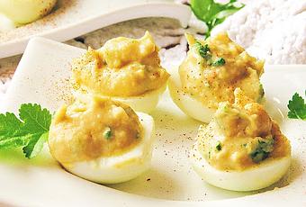 Rellenar las claras y antes de servir esparcir un poco de pimentón dulce