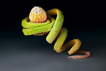 Un huevo junto con su soporte helicoidal de Dryas iulia.