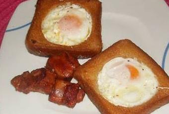 Las damos la vuelta y cascamos un huevo en hueco del pan y dejamos que se fría el pan y el huevo.