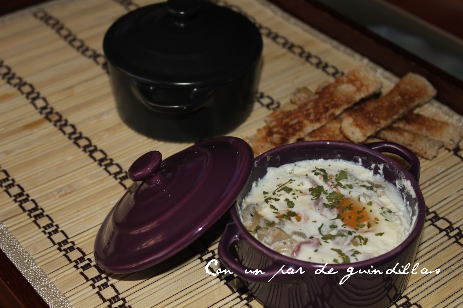 ¿Habéis desayunado ya?, ¿no?, pues entonces aún estáis a tiempo de elaborar estos maravillosos huevos en cocotte y si no tenéis cocotte, en alguna cazuelita, el caso es prepararlos porque se os van a saltar las lágrimas si os coméis esto por la mañana y os aseguro que el resto del día será maravilloso y si no lo es, sólo tendréis que recordar el desayuno para que vuestra cara muestre una sonrisa de felicidad.