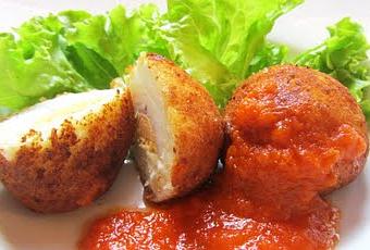 A continuación, vamos moldeando cada huevo y rebozándoloen pan rallado, y así huevo a huevo, los vamos poniendo en otra bandeja, listos para freír.