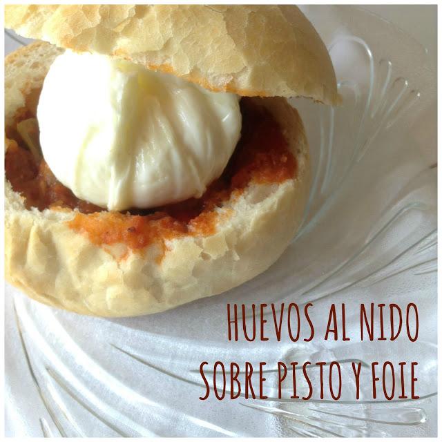 I'm pretty sure that the most of you have tasted "eggs in the nest". But these are a little bit different since they are not baked in the oven. It's a poche egg on a "comfortable" bed of bread and "pisto" (a vegetable Spanish sauce) and some foie on the top.
