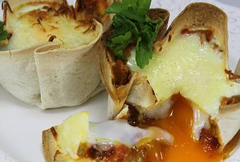 4- Introducir en las tortitas aún dentro del molde, el tomate, sin llenar mucho o se marcha la clara del huevo. Hacer un pequeño hueco apartando so tomate para los bordes. Cascar un huevo encima, salar, espolvorear queso rallado y en dos tandas , gratinar sólo con el cabezal , hasta que el huevo esté a vuestro gusto, unos 15 minutos,.