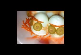 Se hierven los huevos con un poquito de sal, cuando estén fríos se parten por la mitad...separamos las yemas de lo blanco y las ponemos en un cuenco.