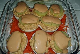 Esta receta de huevos rellenos con atún y patatas, tiene muchas variantes y muchas formas de adornarla una vez hecha. Así que, además de probar esta receta, podéis innovar dando vuestro propio toque.