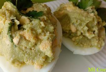En ésta ocasión, aprovechando un guacamole preparado para compartir como aperitivo, se me ocurrió rellenar unos huevos cocidos.