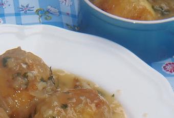 INGREDIENTEShuevoslangostinosajosharina y huevo para rebozaraceitepara la salsacebollaaceiteajo y perejil de gourmet gardenvino blancoun poco de harina