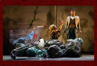 Una escenografía ingeniosa, imponente, hecha toda de materiales reciclados. Un vagabundo inmensamente tierno (Jorge Costa), una frágil mendiga (Luisina Di Chenna) y un policía que permite las más divertidas persecuciones (Esteban Parola), hacen de esta dramática historia, una comedia que conmueve y transforma.