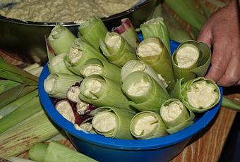 Humitas preparadas para cocer al vapor