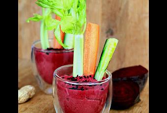 Para darle otro toque, además de la remolacha, he utilizado mantequilla de cacahuete en vez de tahini, que es lo que suele llevar el hummus tradicional, pero podéis utilizar o cacahuetes crudos o tahini, lo que queráis.