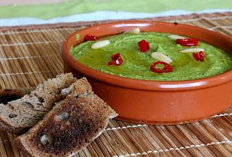 PasosLo primero que tendréis que hacer es lavar muy bien los garbanzos cocidos para eliminarle cualquier resto de sabor de conserva. Lavad también las espinacas frescas para eliminar cualquier porquería que pueda llevar. A continuación, poned una olla con agua y sal al fuego, y cuando hierva añadid las espinacas. Tenedlo sobre un minuto o dos, no hace falta que se hagan demasiado. Cuando estén hechas pasadlas a un bol con agua muy fría, preferiblemente con hielo, para que no pierdan el color verde intenso.Ahora lo único que tendréis que hacer es triturar los garbanzos con las espinacas, media guindilla fresca para darle un toque picante, un ajo grande, un espolvoreado de pimienta y de sésamo, el zumo de medio limón y media cucharadita de cúrcuma y cominos molidos junto con un buen chorro de aceite de oliva. Trituradlo todo muy bien e id probándolo por si hiciera falta añadir un pelín de agua por si se queda muy duro o añadir alguna especia más. Cuando vayáis a servirlo ponedle un poco de aceite de oliva y podréis usarlo como aperitivo para vuestras comidas.