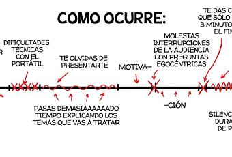Relacionado a esto, quiero mostrarles una ilustración del sitio PhD Comics, que vimos en Puntogeek y que fue traducida por Manz, la cual nos muestra cómo planeamos una conferencia y cómo ocurre en la práctica.