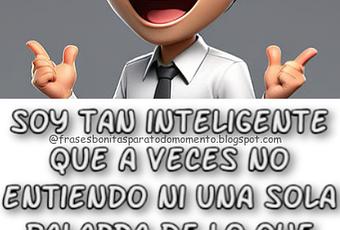 1.-Se busca hombre estéril, viudo, huérfano, ciego, sordo y si tiene dinero no me pongo enojada.2.-A mí, el único que me domina es el sueño.3.-Soy tan inteligente que a veces no entiendo ni una sola palabra de lo que estoy diciendo.4.-La experiencia es como un peine que te dan justo cuando te quedas calvo.5.-¿En qué se parecen los hombres a las botellas de cerveza? - Del cuello para arriba están vacíos.6.-¿Qué entiende un hombre `por colaborar en la limpieza de la casa? - Levantar los pies cuando su mujer pasa la aspiradora.7.-¿En qué se parecen los dinosaurios a los hombres inteligentes? - En que los dos se extinguieron hace mucho.