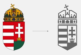 Este es un trabajo realizado por el húngaro Mikloss Kiss. El diseñador rediseñó el escudo de armas de Hungría, lo simplificó dejando todos los elementos de la heráldica necesaria en su lugar, y luego le dio un uso más contemporaneo. Este escudo también sirvió para unificiar el lenguaje visual de la administración del estado y organizaciones nacionales. Aquí se muestran algunos ejemplos, entre ellos, el escudo de armas de la capital Budapest.