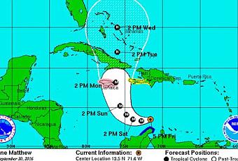 A las seis de la tarde el centro de Matthew se estimó en los 13.5